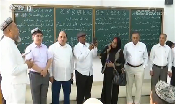 在烏魯木齊、吐魯番等地,使節(jié)們逛巴扎、進(jìn)社區(qū)、訪民居,同當(dāng)?shù)馗髯迦罕娒鎸γ娼涣?,實地感受了一個社會和諧、民族和睦、文化多元、富有活力的新疆。參訪期間,使節(jié)們還前往新疆伊斯蘭教經(jīng)學(xué)院、吐魯番市喀孜汗清真寺參觀,詳細(xì)了解了有關(guān)宗教教職人員培養(yǎng)、宗教活動開展及公民宗教信仰自由保障等情況。在吐魯番市職業(yè)技能教育培訓(xùn)中心,使節(jié)們同教師和學(xué)員們展開互動,積極評價中國政府在依法打擊和預(yù)防恐怖主義等方面所做的工作,認(rèn)為新疆的經(jīng)驗值得學(xué)習(xí)借鑒。