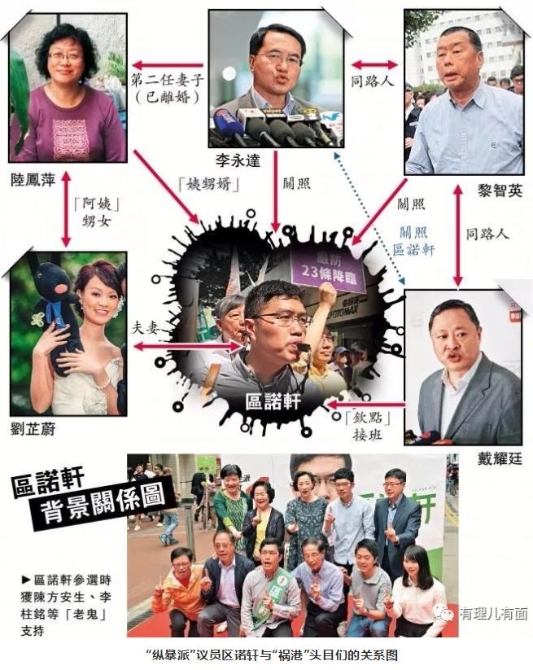 區(qū)諾軒當選后,與“港獨”組織“香港眾志”如影隨形,實施了一系列“港獨”活動。在這次“反修例”暴亂中,與“香港眾志”同進退,是香港街頭暴力活動的幕后推手,可謂暴力亂港的“骨干”分子,這也注定他走上了一條不歸路。