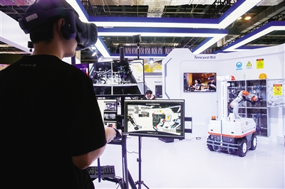 人工智能正在點(diǎn)亮觸手可及的未來。圖為2019世界人工智能大會(huì)上騰訊公司展出的“工業(yè)巡檢機(jī)器人”。記者 丁汀 攝