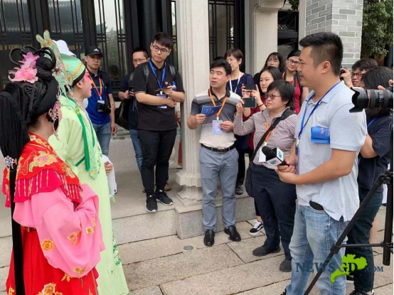 在一段精彩的粵劇表演結(jié)束后,兩位演員剛剛來(lái)到臺(tái)下就被記者們團(tuán)團(tuán)圍住?!澳鷮W(xué)粵劇有多少年了呢?對(duì)于沒(méi)有基礎(chǔ)的人來(lái)說(shuō)粵劇好學(xué)嗎?”來(lái)自新加坡聯(lián)合早報(bào)的記者韓詠紅對(duì)粵劇尤其感興趣,迫不及待地問(wèn)出一連串問(wèn)題?!霸谛录悠掠泻芏嗳讼矚g看粵劇,著名粵劇表演藝術(shù)家紅線女也曾在新加坡演出過(guò)。今天參觀了粵劇博物館、看了粵劇表演以后,我了解了更多有關(guān)粵劇的細(xì)節(jié),尤其是今天兩位藝術(shù)家的表演,真的很精彩?!彼硎?。