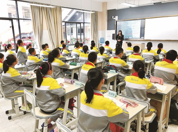 該校在課程設(shè)置上也進(jìn)行了創(chuàng)新,每班每天都開設(shè)一節(jié)體育課。張瓊介紹,學(xué)校體育課還采取了“3+2”模式,每周3節(jié)是國(guó)家規(guī)定的體育課程,另外2節(jié)是特色體育課程。“特色體育課程會(huì)開展班級(jí)之間的體育競(jìng)技,也有由體育老師自創(chuàng)的特色體育。此外,每天還有半個(gè)小時(shí)大課間,除了4套課間操還要求學(xué)生慢跑,確保學(xué)生的鍛煉時(shí)間。”