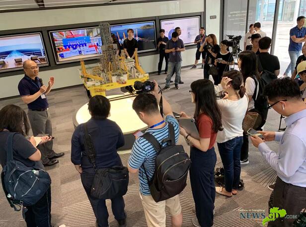 采訪團(tuán)在中集海工參觀設(shè)備模型。
