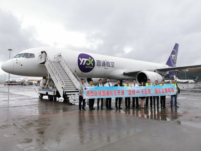 9月2日中午12時50分,隨著圓通航空一架波音757全貨機徐徐降落在昆明長水國際機場。至此,昆明機場開通“昆明—卡拉奇”首條至巴基斯坦全貨機航線。這是中國(云南)自由貿(mào)易試驗區(qū)獲批后,云南機場集團開通的首條國際全貨機航線。