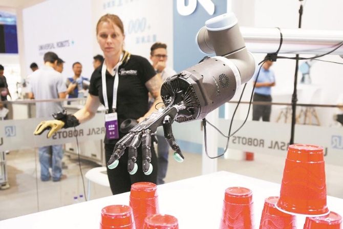 圖為五指靈巧手機(jī)器人。 科技日?qǐng)?bào)記者 周維海/攝