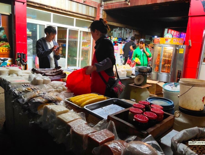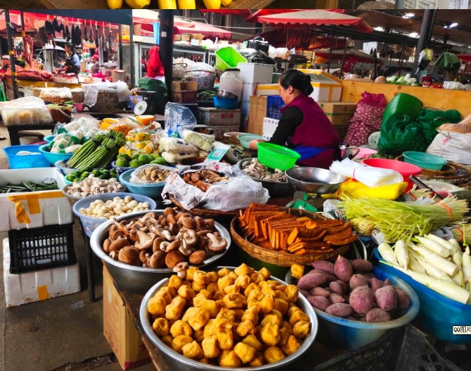 每天清晨,香格里拉最先熱鬧起來的是隱藏在各個(gè)街角的早市,賣早餐的、賣水果的、賣干貨的……勤勞的早市生意人在各自的攤位前忙活開了。這邊,一籠剛出鍋的包子正冒著熱氣,煙霧籠罩下早有人等在跟前兒遞上錢,急著吃上熱乎的早餐;那里,賣牛肉的小伙兒正細(xì)心地切著昨天顧客預(yù)定的上好嫩肉,反復(fù)上稱打量,生怕少斤短兩……這里聚集著香格里拉最普通的勞動者,也是香格里拉最具煙火氣息的地方。