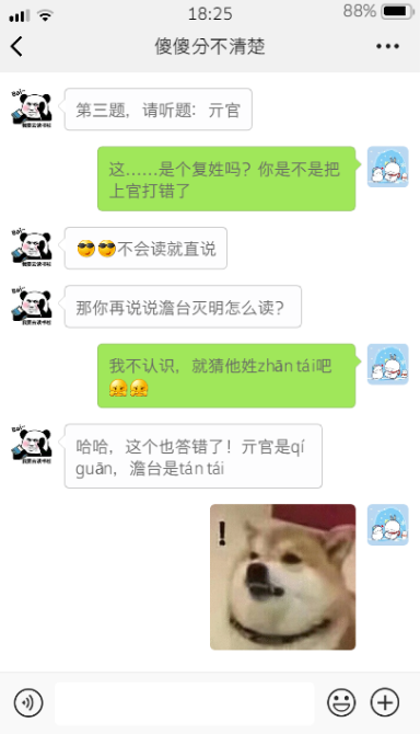 “荀”和“茍”這兩個姓氏,他竟然傻傻分不清楚,于是我又拎出幾個容易混淆的姓氏來考考他。