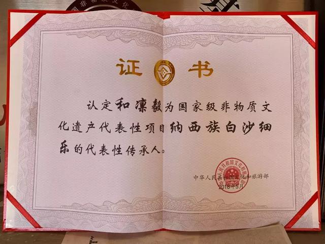 2018年,和凜毅被認(rèn)定為國家級(jí)非物質(zhì)文化遺產(chǎn)代表性項(xiàng)目納西族白沙細(xì)樂的代表性傳承人。