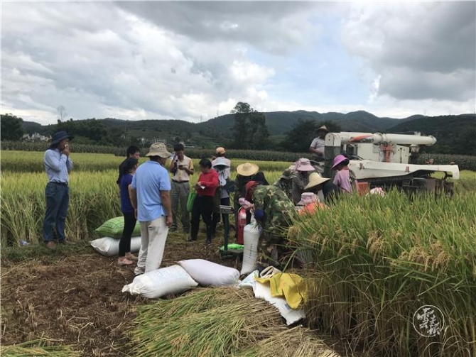 9月10日,由云南省農(nóng)村科技服務(wù)中心主持,邀請國家水稻區(qū)域試驗首席專家、中國水稻所楊仕華研究員,農(nóng)業(yè)農(nóng)村部第四屆國家農(nóng)作物品種審定委員會稻專業(yè)委員會委員林金平高級農(nóng)藝師,以及我省農(nóng)業(yè)推廣、種子管理等部門的7名專家組成專家組,參照《全國糧食高產(chǎn)創(chuàng)建測產(chǎn)驗收方法》,對云南省農(nóng)業(yè)科學(xué)院糧食作物研究所李小林研究員主持的云南省重大科技專項(生物種業(yè)和農(nóng)產(chǎn)品精深加工)“云南省水稻新品種創(chuàng)制和產(chǎn)業(yè)化示范”項目實施的“云科粳1號”百畝方示范樣板進行田間實產(chǎn)驗收。