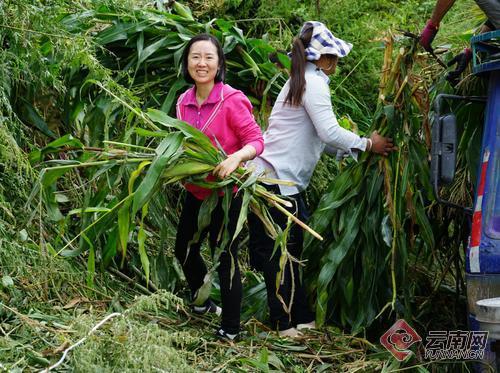 楊宛鈺幫助群眾收割玉米。受訪者供圖