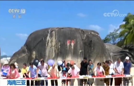 在三亞市,上千名市民游客在天涯海角景區(qū)也以快閃的形式齊唱《我和我的祖國(guó)》,歌聲伴著南國(guó)的徐徐海浪,唱響了每個(gè)人心中滿滿的幸福。音樂訴說心聲,書畫傳遞情意。在天涯石前,多位書法名家現(xiàn)場(chǎng)揮毫潑墨,用筆墨書寫愛國(guó)之情。