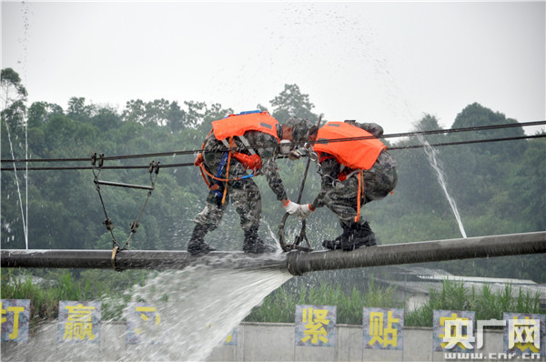 圖為吳勇所在的管線團進行課目訓(xùn)練(央廣網(wǎng)記者 王子衿 攝)