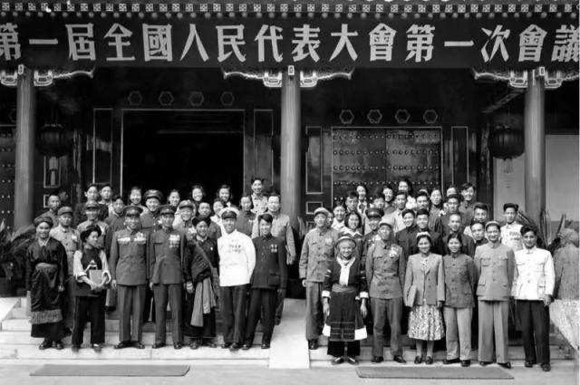 第一屆全國人民代表大會代表總數(shù)1226名,包括我國各民族、各階層、各民主黨派和人民團體的代表人物,如工業(yè)戰(zhàn)線的勞動模范王崇倫、農(nóng)業(yè)戰(zhàn)線的勞動模范李順達(dá)、耄耋老人齊白石、剛到選舉年齡的青年女工郝建秀以及少數(shù)民族代表、歸國華僑代表等。