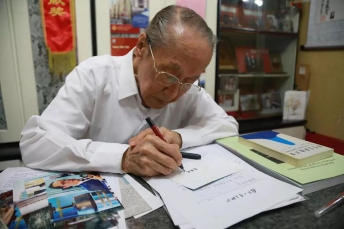 去年,心系學(xué)生的他,用鉛筆在稿紙上工整寫了10多頁的發(fā)言內(nèi)容,拄著拐杖來到學(xué)院跟年輕學(xué)子交流,“對(duì)年輕一代最大的希望,就是要勇于創(chuàng)新。這樣國家科技才能進(jìn)步,國際地位才能跟著提高!”