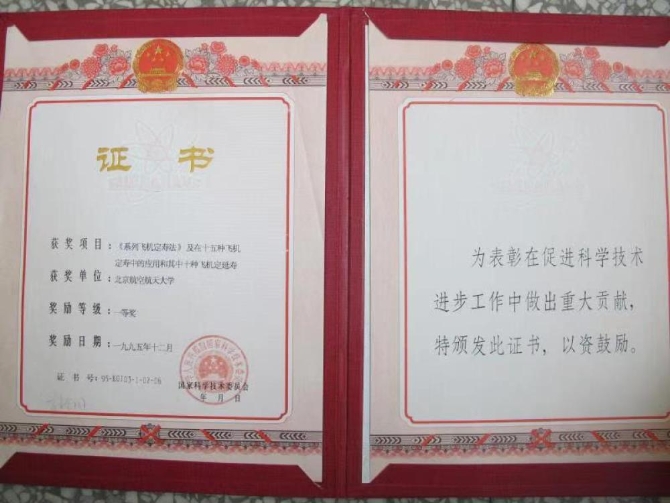 ▲1995年,高鎮(zhèn)同獲得的“國家科學(xué)技術(shù)進(jìn)步獎(jiǎng)”一等獎(jiǎng)證書。北航宣傳部供圖