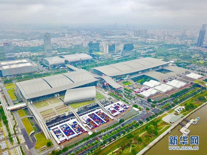 航拍廣交會展館。新華網(wǎng) 伍嘉煒/攝