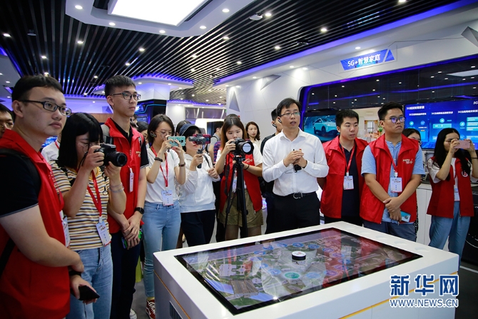 中國聯(lián)合網(wǎng)絡(luò)通信有限公司廣州市分公司副總經(jīng)理周劍明介紹5G技術(shù)。新華網(wǎng) 朱皓/攝