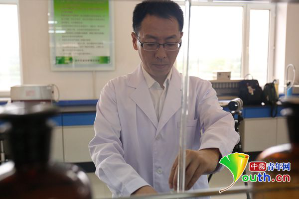 金立軍在化驗(yàn)。中國青年網(wǎng)見習(xí)記者 劉逸鵬 攝
