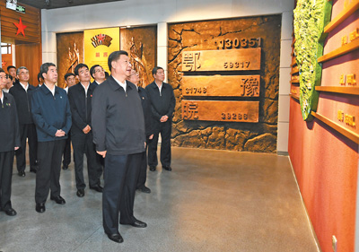 ——9月16日,在信陽(yáng)市新縣鄂豫皖蘇區(qū)首府烈士陵園瞻仰革命烈士紀(jì)念堂時(shí)的講話