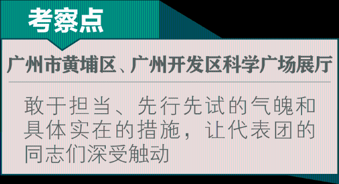 在科學(xué)廣場展廳里,代表團不僅看到了一項項科技創(chuàng)新轉(zhuǎn)化的產(chǎn)業(yè)成果,更看到了一條條服務(wù)創(chuàng)新、推動創(chuàng)新的思路舉措: “訂制式”審批服務(wù)、“一枚印章實施審批”、“承諾制信任審批”、“全口徑竣工聯(lián)合驗收”、“一門式”政策兌現(xiàn)服務(wù)……“人人都是營商環(huán)境、處處優(yōu)化營商環(huán)境”,黃埔區(qū)、廣州開發(fā)區(qū)敢于擔(dān)當、先行先試的氣魄和具體實在的措施,讓代表團的同志們深受觸動。