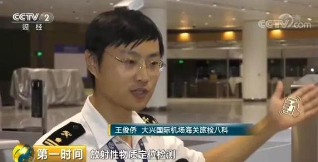 大興國際機場海關(guān)旅檢八科 王俊僑:它把紅外測溫系統(tǒng)、放射性物質(zhì)定位檢測和人員信息采集全部集成到了一臺設(shè)備上,這樣可以最大限度保障旅客“無感通關(guān)”,這個通道的總長度是3.5米,旅客通關(guān)時間大概是3-4秒。