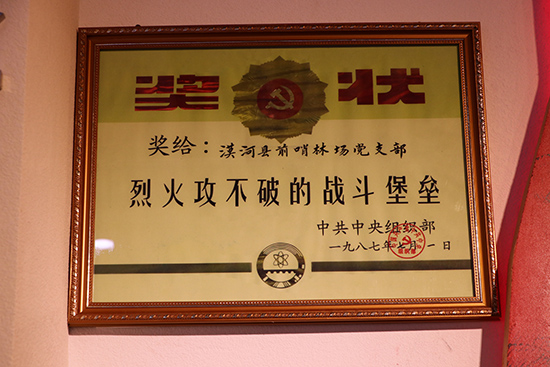 中共中央組織部于1987年7月1日授予漠河縣(現(xiàn)為漠河市)前哨林場黨支部“烈火攻不破的戰(zhàn)斗堡壘”榮譽稱號。(圖片為受訪者提供)