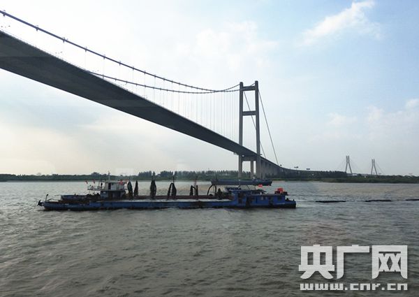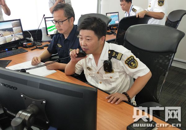 六圩河口聯(lián)合監(jiān)管辦事處執(zhí)法現(xiàn)場(央廣網(wǎng) 記者黃炎秋 攝)