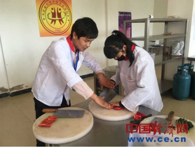 圖為馬成華正在指導馬世芳切菜。經(jīng)濟日報-中國經(jīng)濟網(wǎng)記者 梁木 攝