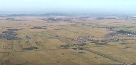 遼寧省東港市沿海水稻種植田東臨鴨綠江、南臨黃海,獨(dú)具沿江、沿海、沿邊臨港的獨(dú)特地理環(huán)境。每逢秋天,豐收形成的金黃色和大海的蔚藍(lán)色遙相呼應(yīng),再加上蜿蜒流轉(zhuǎn)的河流,形成獨(dú)特的金秋畫卷。