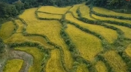 我國第一個國家級森林公園——湖南張家界國家森林公園坐落在湖南張家界市武陵源區(qū)。盡管已過中秋,這里依然綠意盎然,三千奇峰挺立山間,森林與巖石完美融合,成為獨(dú)特石英砂峰林地貌。再過半個月,山間的銀杏、水杉、楓樹等植物將逐步變黃、變紅,裝扮整個峰林。現(xiàn)在,最先讓人們感受到秋意的就是藏在山間的這片水稻田了,稻子已經(jīng)金黃。為保護(hù)張家界世界自然遺產(chǎn),當(dāng)?shù)卣畬⒑诵膮^(qū)的村民陸續(xù)遷離,讓他們在山下再就業(yè)。但是,山頂?shù)倪@片稻田被保留下來了,由村民繼續(xù)耕種。這片原生態(tài)的空中田園也吸引大量游客前來觀賞和拍照。