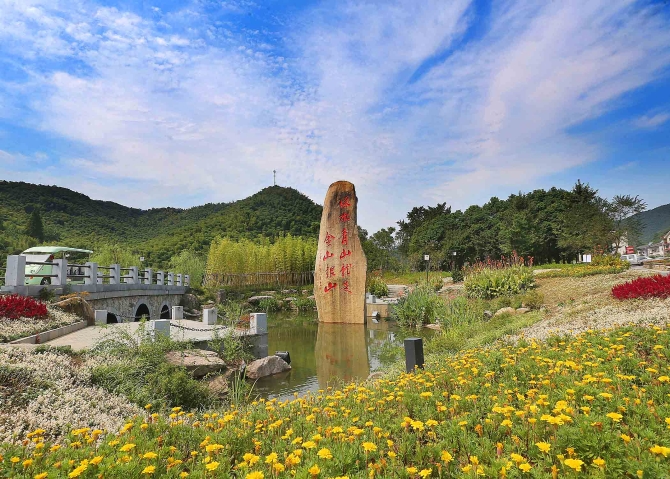在浙江安吉余村,銘刻著“綠水青山就是金山銀山”的石碑就立在村頭,無(wú)聲地向游客“講述”著余村的蛻變。 夏鵬飛攝