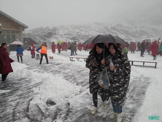 網(wǎng)友“向著love出發(fā)”也在微博上寫道:“玉龍雪山下雪啦!”