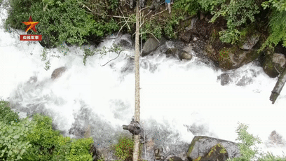 獨木橋僅有一腳寬,盡管有保護繩索,走在上面還是能感覺到樹干劇烈的晃動,每走一步都心驚膽戰(zhàn)。