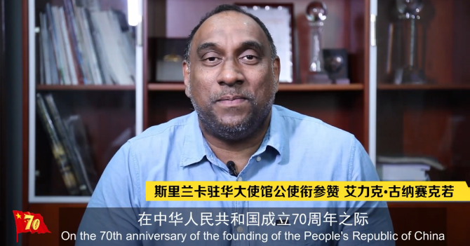 斯里蘭卡駐華大使館公使銜參贊艾力克?古納賽克若稱贊新中國在過去70年中取得的顯著成就,使數(shù)百萬人擺脫了貧困。他祝福新中國生日快樂!
