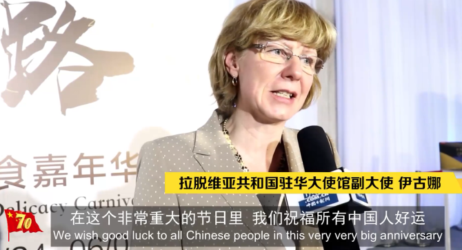 拉脫維亞共和國駐華大使館副大使祝福所有中國人在這么重大的節(jié)日中好運。她表示,今年是拉脫維亞與中國建交27周年,感謝中國一直以來對拉脫維亞的支持。她不知道用中文怎么說生日快樂,但是她想說:“我愛你,中國!”