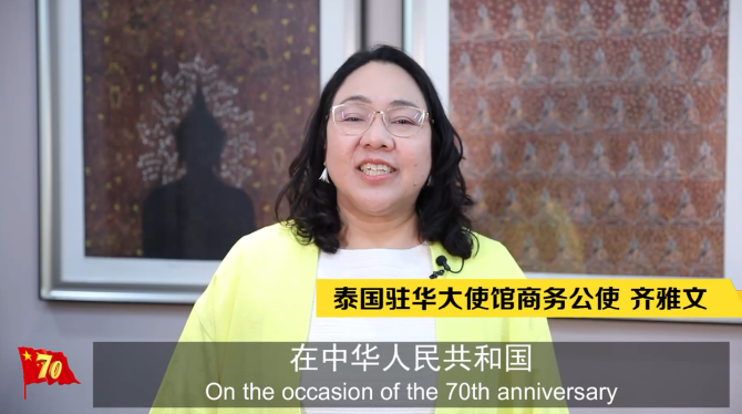 泰國駐華大使館商務(wù)公使齊雅文希望借此佳節(jié),祝福中國在未來更加繁榮昌盛。