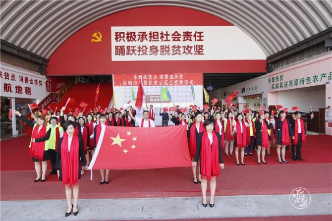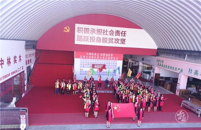 今年 4月22日,昆明市首個消費扶貧示范點在五華區(qū)桃園家俱城掛牌。由五華、尋甸、富民、石林、東川等地企業(yè)選送的百余種愛心扶貧農(nóng)產(chǎn)品進入桃園家俱城黨群活動服務(wù)中心開展展銷。示范點的建立,也成為了昆明市五華區(qū)“黨建引領(lǐng)、消費扶貧”這一精準扶貧工作模式的堅實落實點。