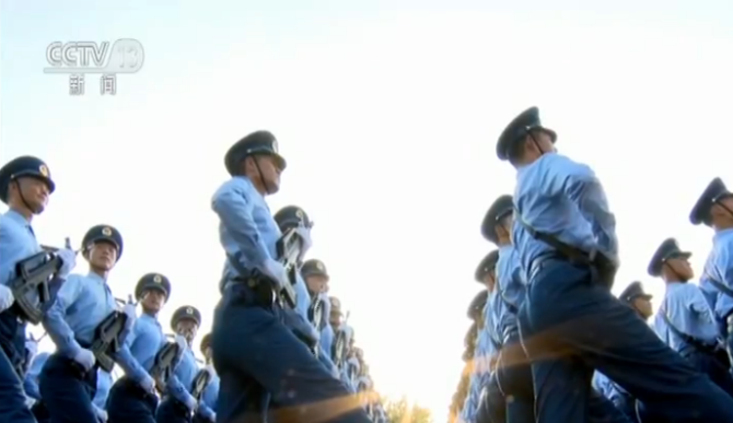 空軍徒步方隊方隊長 趙鄖:戰(zhàn)術(shù)訓(xùn)練通常是降低身體的重心,盡量減少身體的暴露,通常都是屈身前進,八字腳比較普遍。而閱兵訓(xùn)練,(要求)大方威武,頭線、槍線、手線和腳線必須得保持高度的一致。所以,有些習(xí)慣性動作實際上是相互矛盾的。