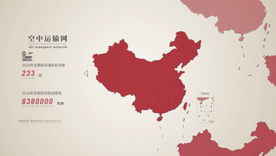 空中運輸網(wǎng):233座機場,838萬公里的航線