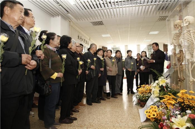 “李教授、胡教授將遺體捐獻給了母校,并都被制作成了教學用骨架,這一舉動在全國尚屬首例?!崩ッ麽t(yī)科大學副校長徐紹瓊說,他們是“無語良師”,他們用“逝而不已,留愛人間”的大愛奉獻精神,來培養(yǎng)學生敬畏生命、救死扶傷的職業(yè)精神,這不僅是生命的延續(xù),更是一種精神的延續(xù)。