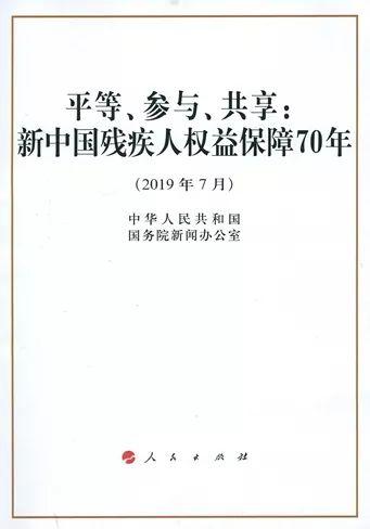 2019年7月25日,國務(wù)院新聞辦公室發(fā)表了《平等、參與、共享:新中國殘疾人權(quán)益保障70年》白皮書,對70年來我國殘疾人權(quán)益保障所走過的不平凡歷程,進(jìn)行了全面客觀真實(shí)的介紹。白皮書以習(xí)近平新時代中國特色社會主義思想為指導(dǎo),突出介紹黨的十八大以來中國殘疾人權(quán)益保障的體制機(jī)制不斷完善,殘疾人社會保障制度和服務(wù)體系不斷健全,殘疾人獲得感、幸福感、安全感持續(xù)提升,殘疾人事業(yè)取得舉世矚目的歷史性成就。