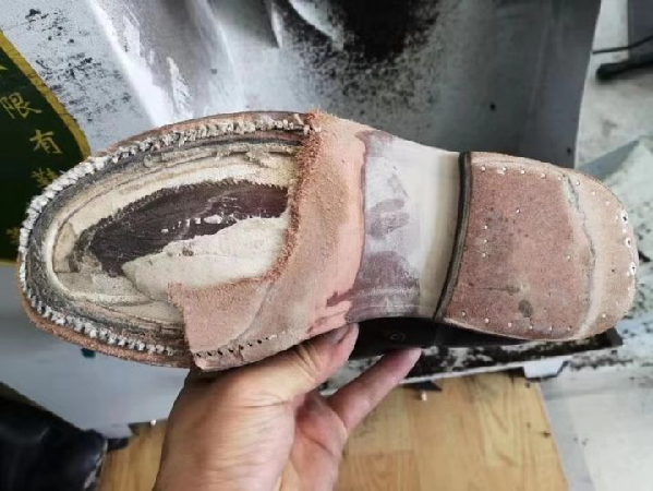 記者看到了很多被“毀了容”的鞋子