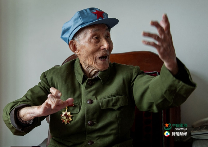 杜宏鑒講起長征時期的事情,記憶猶新。夏一軍 攝(攝于2016年10月17日)