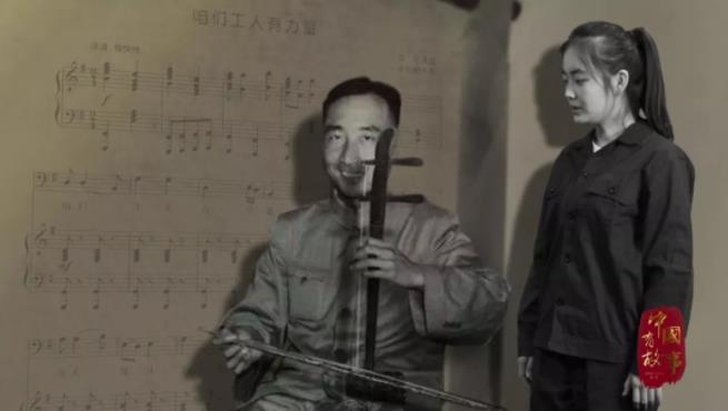他隨即拿起身邊的二胡,胡弦的吱吱呀呀聲正是《咱們工人有力量》最初的樣子。