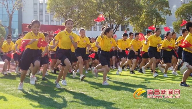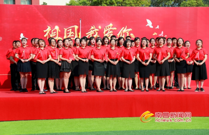 少年智則國智,少年強則國強,少年進步則國進步,少年雄于地球則國雄于地球。緊接著,南昌二中的學(xué)生們個個精神抖擻,揮舞著手中的小紅旗,飽含深情地齊唱《歌唱祖國》,用最真摯的情感和最質(zhì)樸的聲音唱出了南昌的幸福味兒,更唱出了對祖國母親的一片深情。最后,現(xiàn)場全體人員共同高呼:“祖國我愛你!祝我們偉大的祖國繁榮昌盛!”