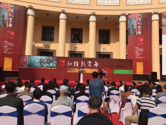 9月29日,慶祝中華人民共和國成立70周年“和諧彩云南——大型主題美術創(chuàng)作展”在云南美術館開幕。