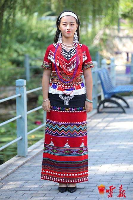鑲花邊的黑布包頭,搭配精美腰箍的彩色橫紋筒裙,墜滿胸前、頸項(xiàng)和腰間的數(shù)十個(gè)五色絨球如鮮花盛開(kāi)……張晨的這套德昂族服飾制作了一個(gè)月。能在國(guó)家盛典中展現(xiàn)本民族盛裝,她十分自豪;能在近兩個(gè)月的艱苦訓(xùn)練中堅(jiān)持下來(lái),她為自己的成長(zhǎng)感到驕傲。
