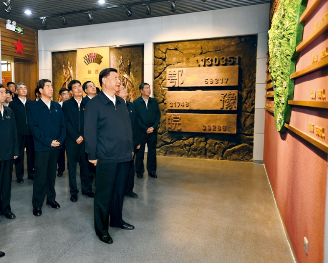 ?2019年9月16日至18日,中共中央總書(shū)記、國(guó)家主席、中央軍委主席習(xí)近平在河南考察。這是16日下午,習(xí)近平來(lái)到位于信陽(yáng)市新縣的鄂豫皖蘇區(qū)首府烈士陵園,瞻仰革命烈士紀(jì)念堂。 新華社記者 謝環(huán)馳/攝