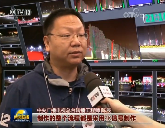 中央廣播電視總臺轉播工程師 陳辰:制作的整個流程都是采用4K信號制作,我們還投入了大量攜帶4K拍攝設備的特種設備,這個以前是從來沒有過的。