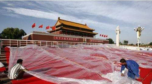 如國慶閱兵2.4萬平方米的紅地毯,是由再生滌綸、地毯專用紗線編織而成,共消耗掉40余萬個廢舊礦泉水瓶;