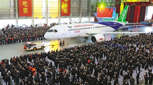 國產(chǎn)大飛機C919成功研發(fā)下線,打破了國外公司對大飛機產(chǎn)業(yè)的壟斷,對我國航空產(chǎn)業(yè)乃至高端制造業(yè)帶來深遠影響。陳夢澤攝(中經(jīng)視覺)